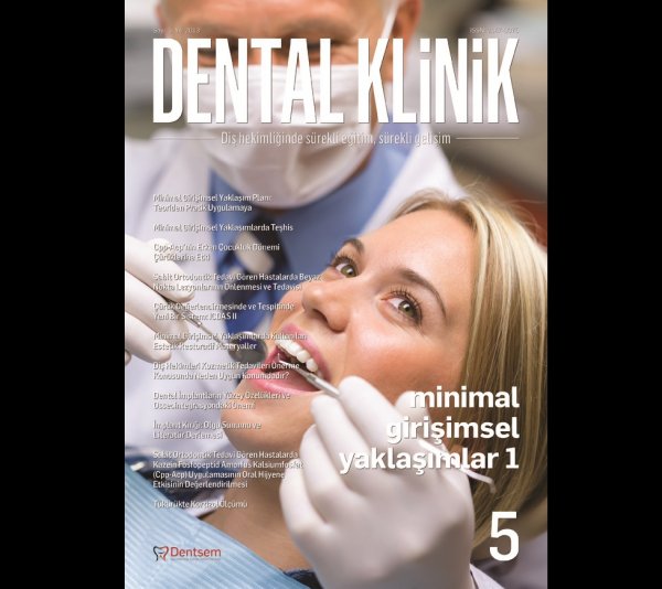İçeriği ve baskı kalitesiyle uluslararası standartlara sahip Dental Klinik Dergisi’nin beşinci sayısında Prof. Dr. Sevil Gürgan, Prof. Dr. Betül Kargül,Prof. Dr. Şebnem Türkün, Doç. Dr. Nazan Ersin, Doç. Dr. Esra Uzer “Minimal Girişimsel Yaklaşım Planı: Teoriden Pratik Uygulamaya”, Yrd. Doç. Dr. Esra Ergin “Minimal Girişimsel Yaklaşımlarda Teşhis”, Prof. Dr. Betül Kargül, Dr. Dt. Başak Durmuş, Prof. Dr. G. Nural Bekiroğlu “CPP-ACP’nin Erken Çocukluk Dönemi Çürüklerine Etki”, Doç. Dr. Esra Can, Dr. Kumru Çöteli “Sabit Ortodontik Tedavi Gören Hastalarda Beyaz Nokta Lezyonlarının Önlenmesi ve Tedavisi”, Doç. Dr. Esra Uzer Çelik “Çürük Değerlendirmesinde ve Tespitinde Yeni Bir Sistem: ICDAS II”, Doç. Dr. Filiz Yalçın Çakır, Prof. Dr. L. Şebnem Türkün, Prof. Dr. Sevil Gürgan “Minimal Girişimsel Yaklaşımlarda Kullanılan Estetik Restoratif Materyaller”, Dr. Xavier Goodarzian “Diş Hekimleri Kozmetik Tedavileri Önerme Konusunda Neden Uygun Konumdadır?”, Prof. Dr. Meral Ünür, Dt. M.Seda Altop “Dental İmplantların Yüzey Özellikleri ve Osseointegrasyondaki Önemi”, Dt. Ezgi Gülüm, Prof. Dr. Nevin Büyükakyüz, Dt. Murat Öztürk, Prof. Dr. Hakan Özyuvacı “İmplant Kırığı: Olgu Sunumu ve Literatür Derlemesi”